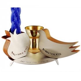 Pomegranate and Dove 4-Piece Havdalah Set - Brass Wood and Steel - Shraga Landesman$436.02 -