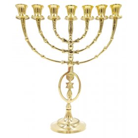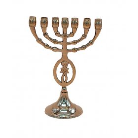 Brass Gold Seven Branch Menorah with Star of David and Fish 8 Inches HeightHeight: 8"$29.10 -