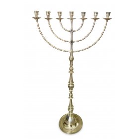 Extra Large Gold Brass Seven Branch Menorah on Stem - 32"$454.86 -