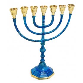 Seven Branch Menorah, Brass Covered with Gold and Blue Patina -12"Height: 12"$78.00 -