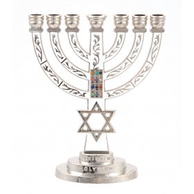Silver Seven-Branch Menorah, Jerusalem Images and Star of David - 9.4" or 6"Choice of 2 sizes$26.00 - $62.53 -