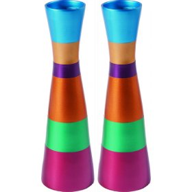 Anodized Aluminum Slender Shabbat Candlesticks - Colored Bands by Yair EmanuelChoice of Colors$76.10