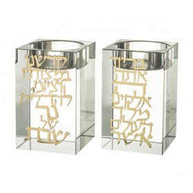 Glass Candlesticks - Gold Color Metal Shabbat Kodesh Overlay Design$33.04New arrival! -