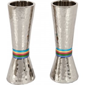Hammered Nickel Cone Candlesticks with Colored Rings - Yair EmanuelChoice of colors$77.93 -