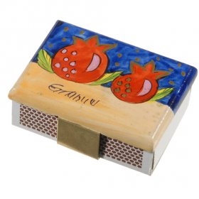 Painted Wood Matchbox Holder, Pomegranates - Yair Emanuel$10.07 -