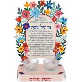 Shabbat Candleholders with Prayer and Blessing, Colorful Flowers - Dorit Judaica$54.84 -