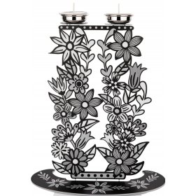Shabbat Candlesticks, Tall Flowers and Leaves in Black, White & Gray - Dorit Judaica$54.84 -