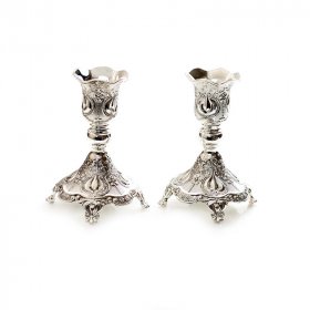Sterling Silver Shabbat Candlesticks - Single Floral Band at Base$455.39 -