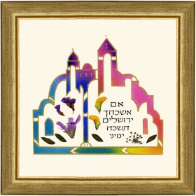 We present to you here a collection of Dvora Black’s wall hangings. They express the rich feelings of identity and empowerment that come from being part of a Jewish home and family. Her pictures celebrate those special moments in life. To highlight the impact of the text, many pictures have a large gold frame, enabling the light to filter through the colors giving them a beautiful glow.