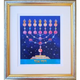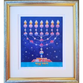 Print of Seven-Branch Menorah Hand Painted on Lucite, Framed - Dvora Black$144.38 -