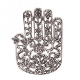 Hamsa Trivet with Floral Decoration, Silver - Yair EmanuelSize: 9" x 6.7" / 23cm x 17cm$25.35 -