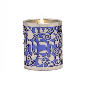 Yahrzeit Memorial Candle Holder with Yizkor & Pomegranates Cutout, Blue - Yair Emanuel$30.22 -