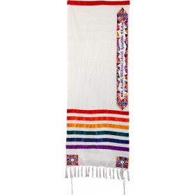White Polysilk Tallit Set Colorful Embroidered Jerusalem Design - Yair Emanuel16" x 70"$135.42 -