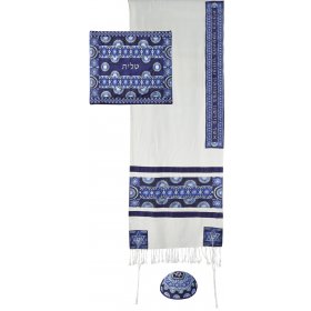 Three-Piece Tallit Set with Decorative Embroidered Stripes, Blue - Yair EmanuelSize: 20" x 75"$153.33 -
