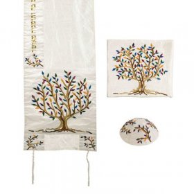 Polysilk Tallit Set with Embroidered Multicolored Tree of Life - Yair EmanuelSize: 16" x 70"$137.67 -