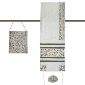 White Polysilk TalliSack Tallit Set with Embroidered Flowers - Yair Emanuel16" x 70"$135.42 -