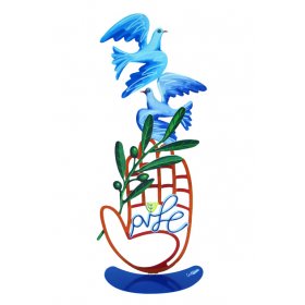 David Gerstein Free Standing Hamsa Sculpture Olives & Doves - Shalom Al YisraelHeight: 8.7"$126.46 -