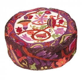 Embroidered Maroon Bucharian Hat-Kippah, Colorful Flowers - Yair EmanuelSize: 22" / 55.9 cm$20.36 -