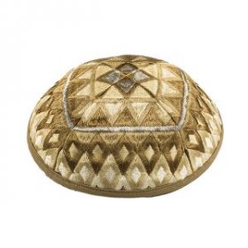 Cotton Poly Kippah with Silk Embroidered Geometrical Shapes, Gold - Yair Emanuel$13.00 -