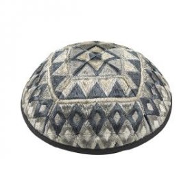 Cotton Poly Kippah with Silk Embroidered Geometrical Shapes, Silver - Yair Emanuel$13.00 -