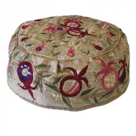 Embroidered Bucharian Hat Kippah on Gold, Pomegranates - Yair EmanuelSize: 23.5" / 56 cm$20.03 -
