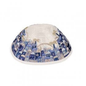 Embroidered Kippah, Jerusalem Vistas in Blue - Yair Emanuel$13.00 -