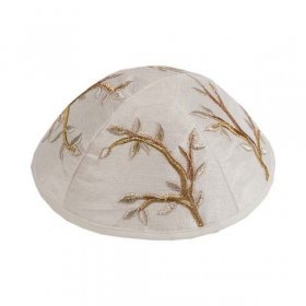 Embroidered Kippah Tree of Life Design, Gold and Silver on Cream - Yair Emanuel$13.00 -