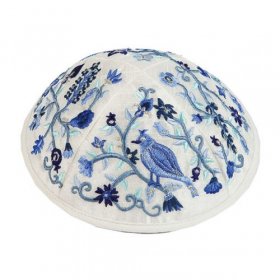 Embroidered Kippah with Birds and Flowers, Blue - Yair Emanuel$13.00 -