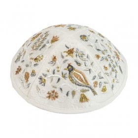 Embroidered Kippah with Birds and Flowers, Gold and Silver - Yair Emaneul$13.00 -