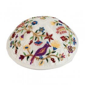 Embroidered Kippah with Birds and Flowers, Multicolored - Yair Emanuel$13.00 -