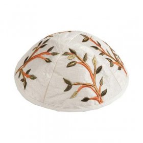 Cotton Poly Kippah with Silk Embroidered Oriental Nature Design, Silver - Yair Emanuel$14.45 -