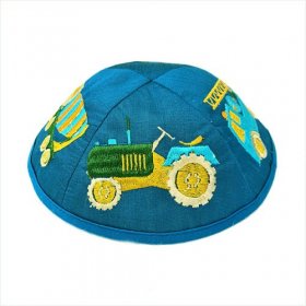 Kippah for Children, Embroidered Colored Trucks on Blue - Yair Emanuel$10.52 -
