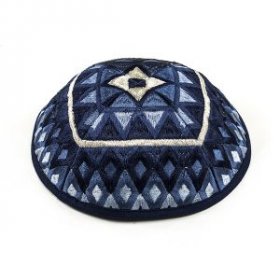 Kippah with Silk Embroidered Geometrical Shapes in Shades of Blue - Yair Emanuel$13.00 -