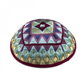 Yair Emanuel Kippah – Embroidered Multicolor Geometric Design$13.00 -