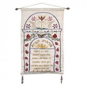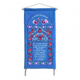 Home Blessing in English, Pomegranate Frame and Doves on Blue Silk - Yair Emanuel$34.70 -