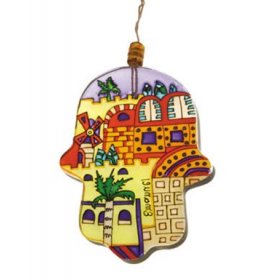 Glass Hamsa Wall Decoration, Hand Painted Jerusalem Images – Yair Emanuel$26.20 -
