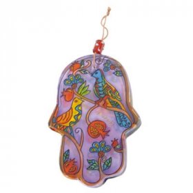 Hand Painted Colorful Laser Cut Wall Hamsa, Birds - Yair Emanuel$25.74 -