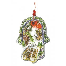 Glass Hamsa Wall Decoration, Hand Painted Seven Species - Yair Emanuel$26.20 -