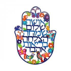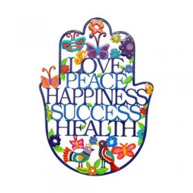 Hand Painted Colorful Wall Hamsa with Hebrew Blessing Words, Medium - Yair Emanuel$25.74 -