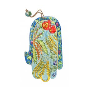 Hand Painted Wood Wall Hamsa, Green Seven Species - Yair Emanuel$20.11 -