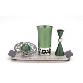 Green-Silver Aluminum Havdalah Set - Agayof$554.00FREE delivery -