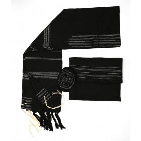 Handwoven Wool Prayer Shawl Set, Black with Gold Stripes - Gabrieli$326.81 - $493.57FREE delivery -