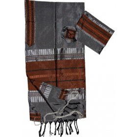 Handwoven Gray Silk Prayer Shawl Tallit Set Copper Colored Stripes - Gabrieli$326.81 - $493.57FREE delivery -