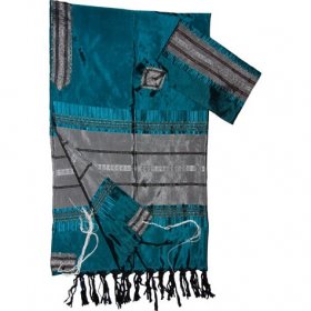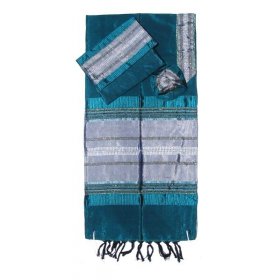 Handwoven Silk Prayer Shawl Tallit Set, Teal Blue and Silver Stripes - Gabrieli$326.81 - $493.57FREE delivery -