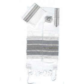 Handwoven White Silk Prayer Shawl Set with Black and Silver Stripes - Gabrieli$326.81 - $493.57FREE delivery -