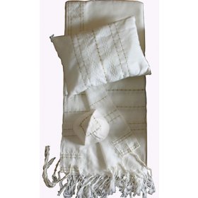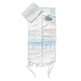 Handwoven White Wool Prayer Shawl Set with blue Stripes - Gabrieli$326.81 - $493.57FREE delivery -
