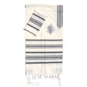 Handwoven White Wool Prayer Shawl Set with Black Stripes - Gabrieli$326.81 - $493.57FREE delivery -