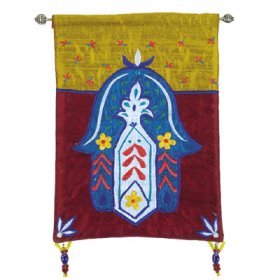 Appliqued Silk Wall Banner, Colorful Flowers and Leaves - Yair Emanuel9" x 9.5"$31.50 -