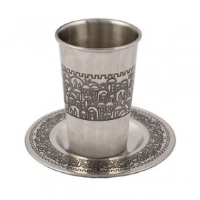 Stainless Steel Kiddush Cup and Saucer, Jerusalem - Yair Emanuel$34.14 -
