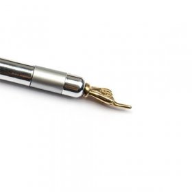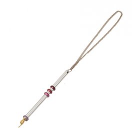 A Yad-Torah Pointer is a small elegant metal rod with a pointed index finger shape at the end. Usually, there is a small chain to attach it to the staves of the Torah scroll. It is used by the Reader since the parchment and ink are highly sensitive and will be affected even by a finger touch. At the same time, the Pointer is an expression of respect and awe for the holy scroll.